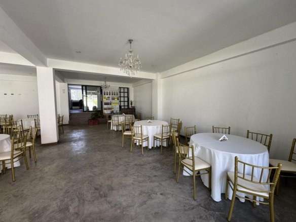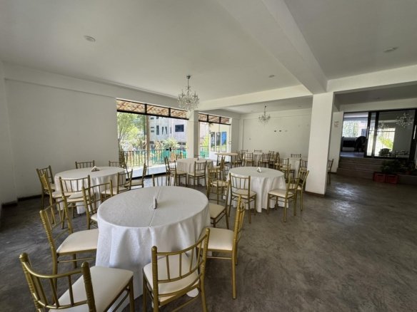 El inmueble se distribuye en tres pisos y sótano, incluye un apartamento independiente para uso del propietario y dispone de 860 m² de área descubierta apta para jardines, terrazas al aire libre, expansión de eventos o parqueos adicionales. En su interior cuenta con cuatro dormitorios, tres baños completos y cuatro medios baños, además de salas, comedores, cocina equipada, cocina americana, lavandería y depósitos, lo que facilita la operación simultánea del negocio y la convivencia familiar.