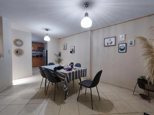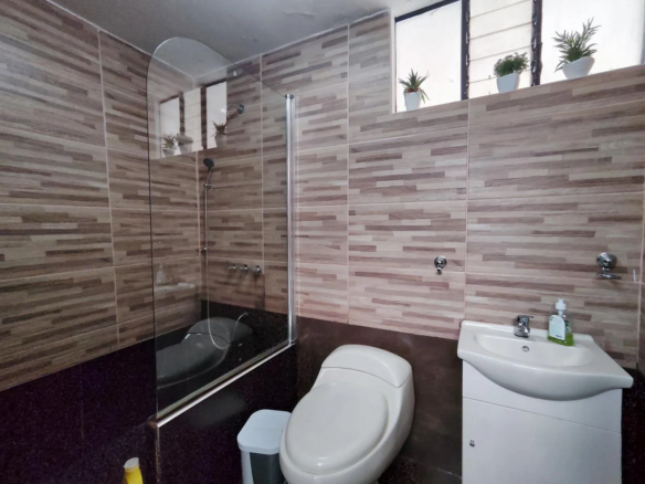 El segundo nivel alberga cuatro dormitorios, tres baños completos y un apartamento para invitados, ideal para familias numerosas o para rentar a terceros. Los pisos de madera en áreas sociales y acabados de cerámica en zonas húmedas brindan un toque de elegancia y funcionalidad.