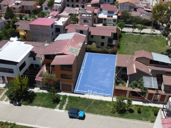 El terreno, de forma regular y topografía plana, tiene una superficie total de 200 m², con un frente de 10 metros y un fondo de 20 metros, dimensiones óptimas para un diseño arquitectónico eficiente y adaptable.